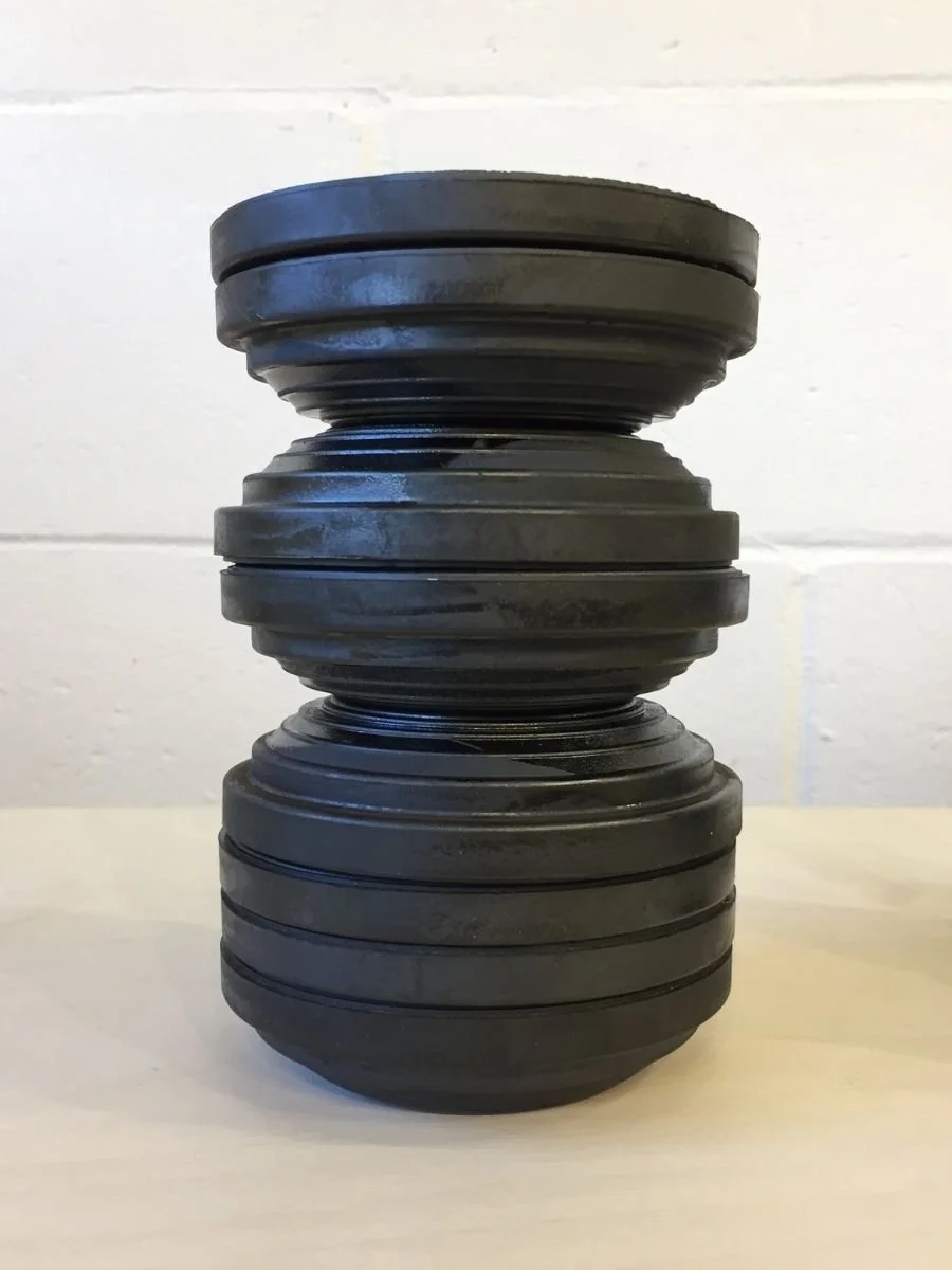 These objects are fragile, and the assigned stacking renders an instability to the sculptures. Leonard imbues the owner with a responsibility to maintain the piece, not only as a precarious object, but to adhere to the assigned rules of assembly.