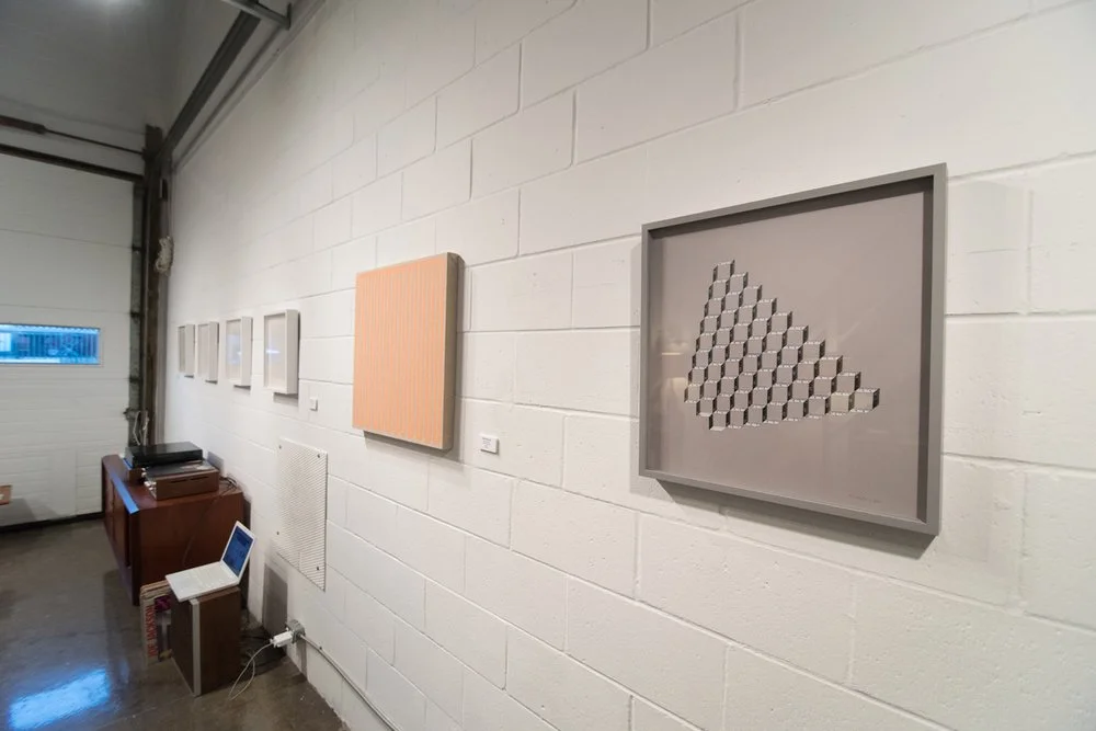 This exhibition draws together 3 Canadian artists; Tammi Campbell, Neil Harrison, and Kristiina Lahde, all working well beyond what one would describe as a contemporary modernist revival. Each has found a succinct way, through their work, to talk about form and function. The tie that binds these artists is referenced in the exhibition title “Hard To Look At” a nod to hard-edged or ruled work (the practice of using rulers, straight edges, tape measures and masking tape to produce a defined edge). The approach each artist has taken ranges from theoretical to literal. By applying the practice of hard-edged work combined with an unconventional use of materials these artists have forged a new direction in Canadian art, all the while referencing the past.