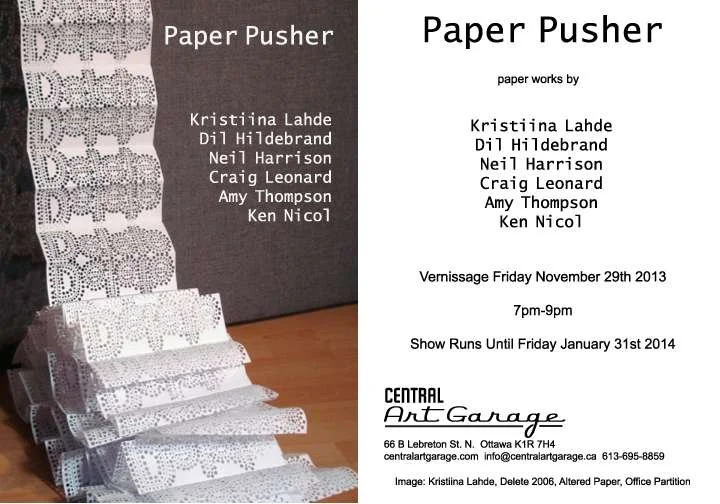 Ottawa is a city with a somewhat deserved reputation as a sleepy government town. Where, presumably, civil servants spend their days shuffling paper in concentric patterns. This thinly upheld stereotype becomes a just backdrop for the exhibition, Paper Pusher.