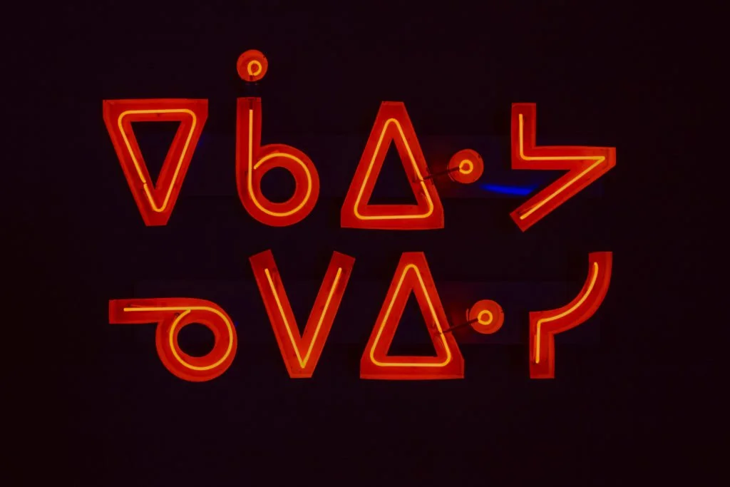 Joi T. Arcand, ēkawiya nēwēpisi (Don’t be shy), 2017. Neon channel sign. Courtesy the artist. Photo: Carey Shaw Photography.